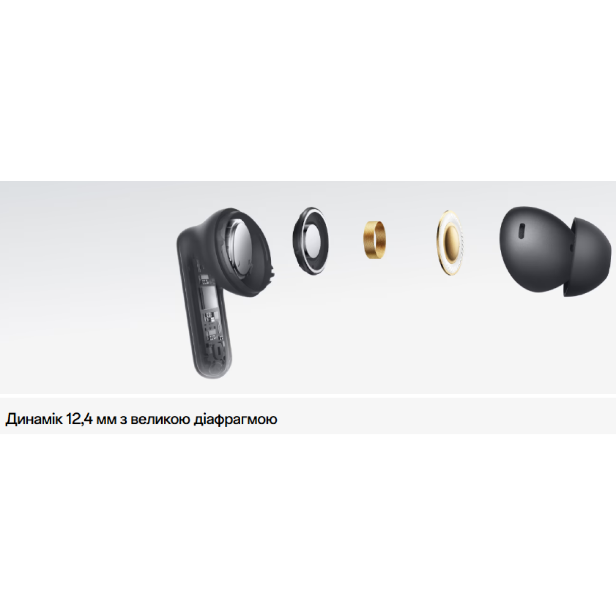 бездротові навушники, які поєднують у собі передові технології та стильний дизайн. Великий динамік діаметром 12,4 мм із титановим покриттям забезпечує насичений бас, чітке відтворення високих частот і деталізований звук, що дозволяє насолоджуватися музикою на максимум.