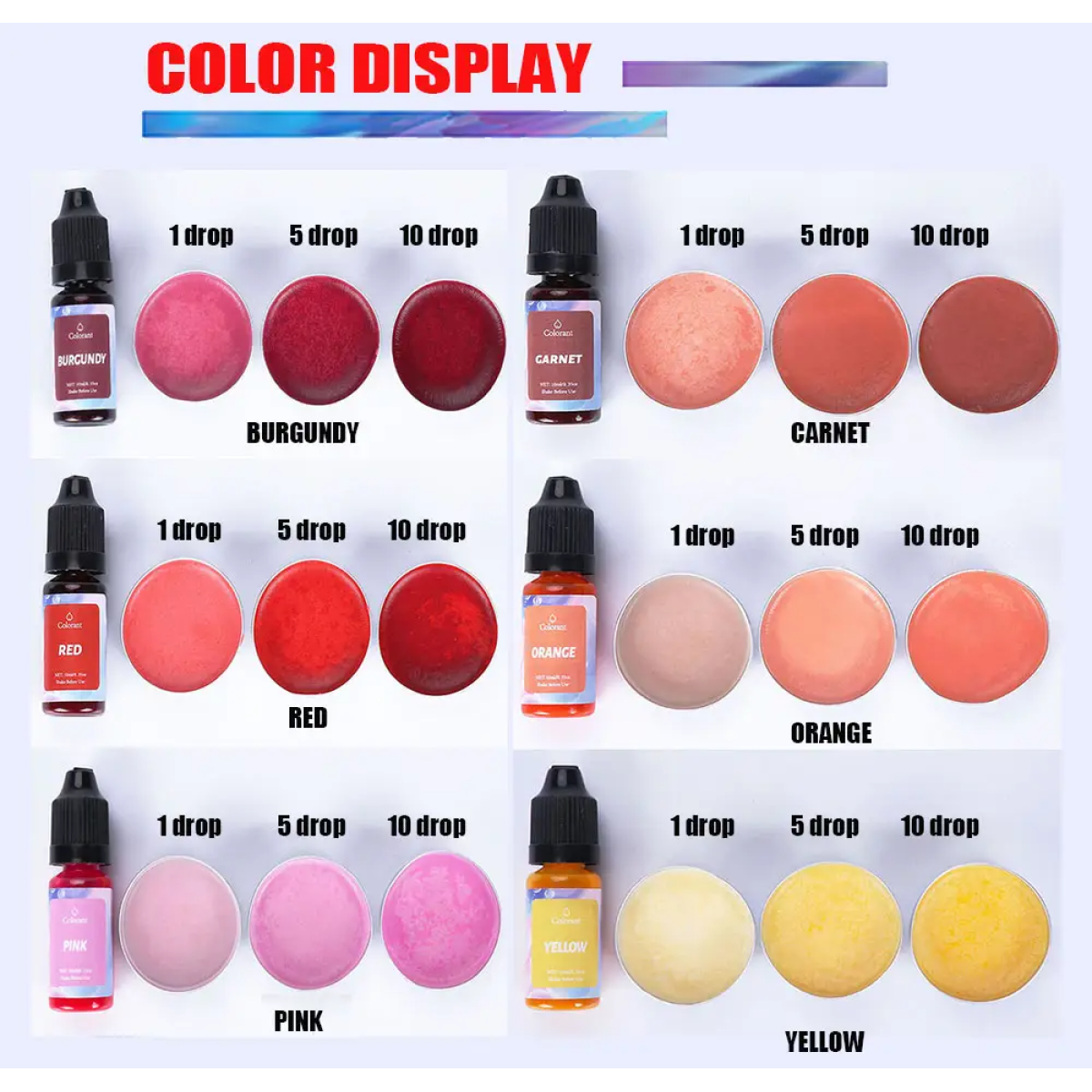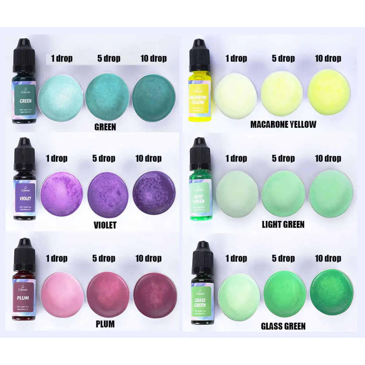 Набір рідких барвників, 18 насичених кольори - ідеально підійде для самостійного виготовлення свічок, мила та інших креативних проектів. Лише кількох крапель достатньо, щоб пофарбувати виріб до бажаної яскравості. Ви самі регулюєте насиченість кольору. Барвник швидко розчиняється у всіх видах воску, парафіну та мильної основи, не осідає, не потребує тривалого розмішування. Барвник також ідеальний для мила. Він рівномірно розподіляється в мильній основі, створюючи чисті, яскраві відтінки без розводів і осадів. Підходить як для прозорої, так і для білої основи. Перед першим використанням просто проколіть або зріжте верх крапельниці. Також захистіть робочі поверхні, щоб уникнути фарбування. Барвник може випадати в осад, тому перед використанням його необхідно струшувати. Після додавання у віск або мильну основу ретельно розмішайте барвник протягом 1-2 хвилин для рівномірного фарбування. Наш барвник не призначений для фарбування гелевих свічок. У соєвому воску і білій мильній основі відтінки можуть бути менш яскравими, оскільки вони вже мають свою природну білизну. Характеристики: Тип: барвники рідкі для виготовлення свічок і мила Склад: пігменти та органічні олії Кількість: 18шт Об“єм: 10мл/шт