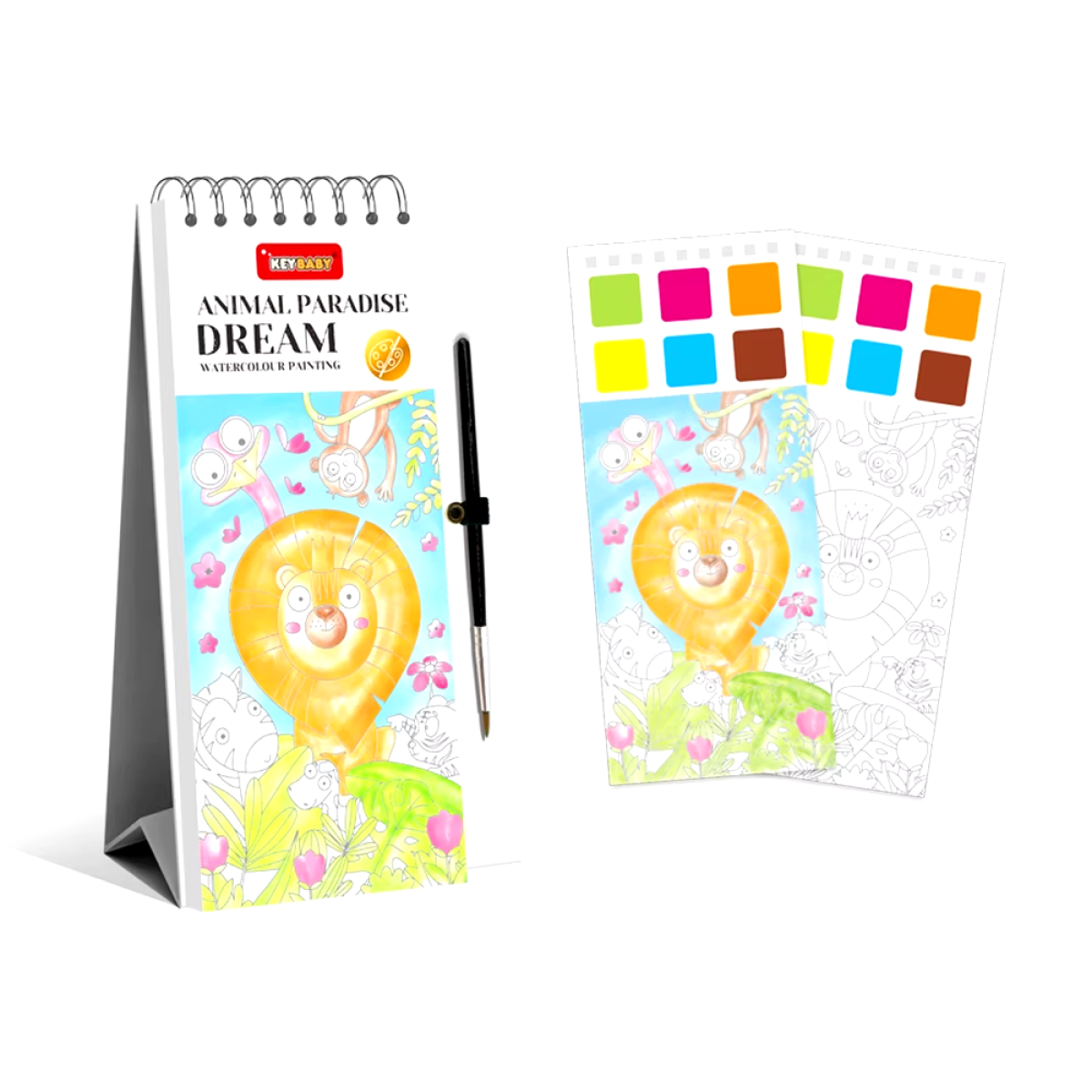 Набір для творчості.Розмальовка з фарбами і пензликом.Мольберт для дітей з палітрою Keybaby Animals