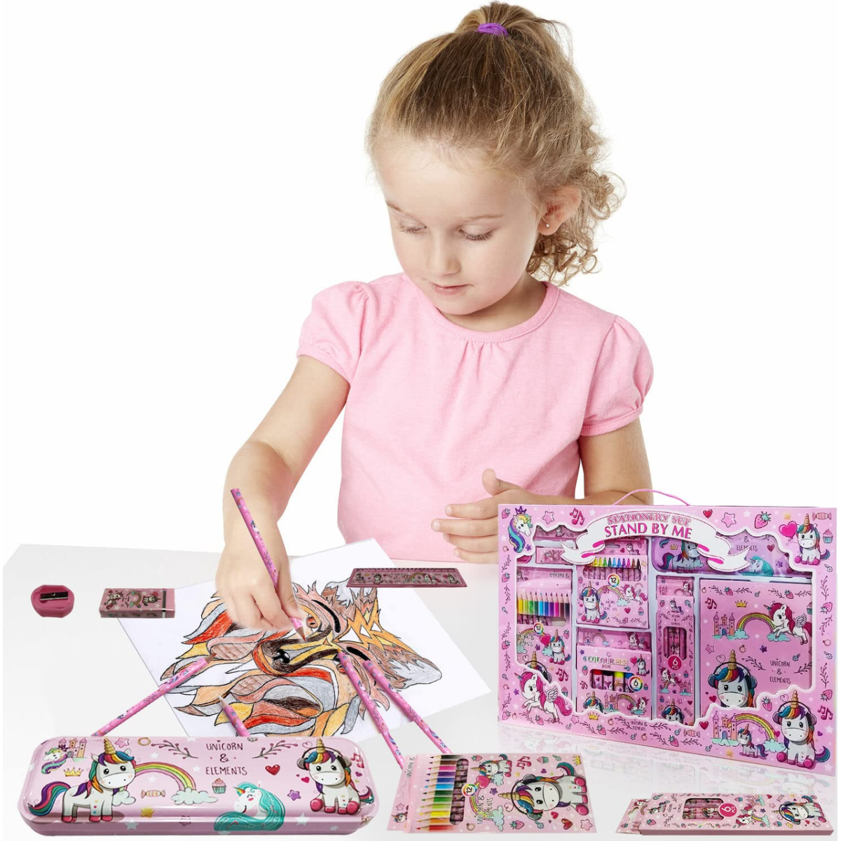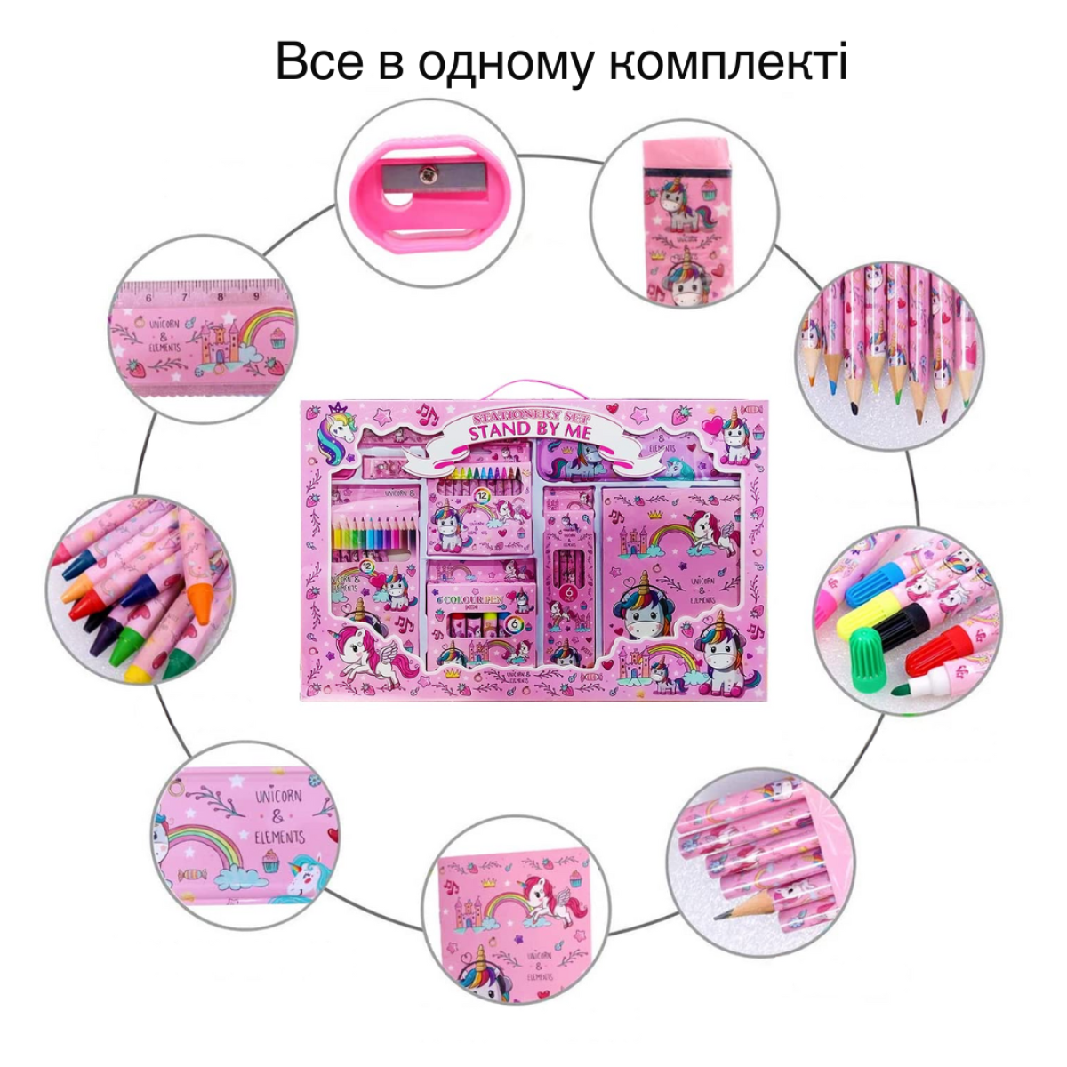 Набір для творчості та малювання: пенал, олівці, маркери, аксесуари, подарунковий набір Єдиноріг