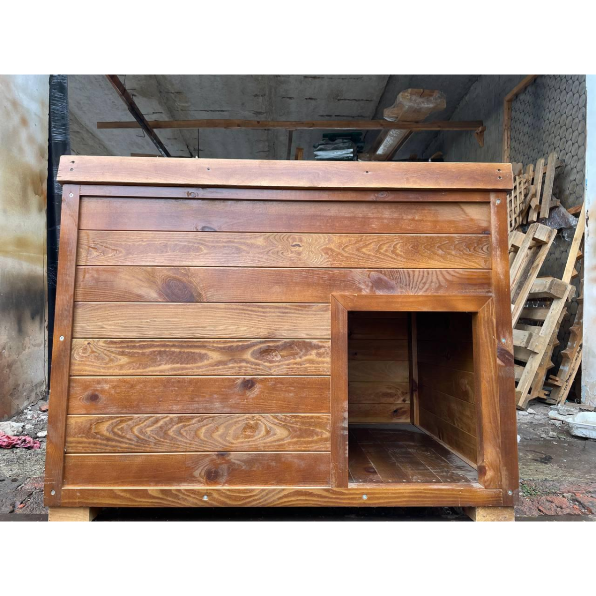 Будка зроблена з усіх стандартів якості, за всіма рекомендаціями ветеринарів із сухої, проструганої, ідеально відшліфованої, шпунтованої дошки 20 мм, в якій з часом не буде щілин. З можливістю утеплення та додавання шторочки на вхід!