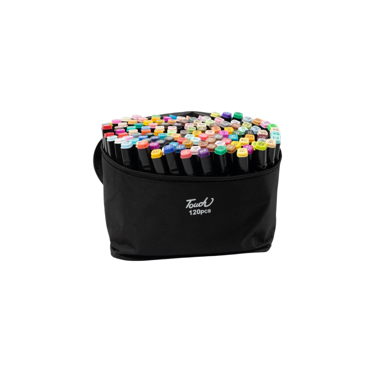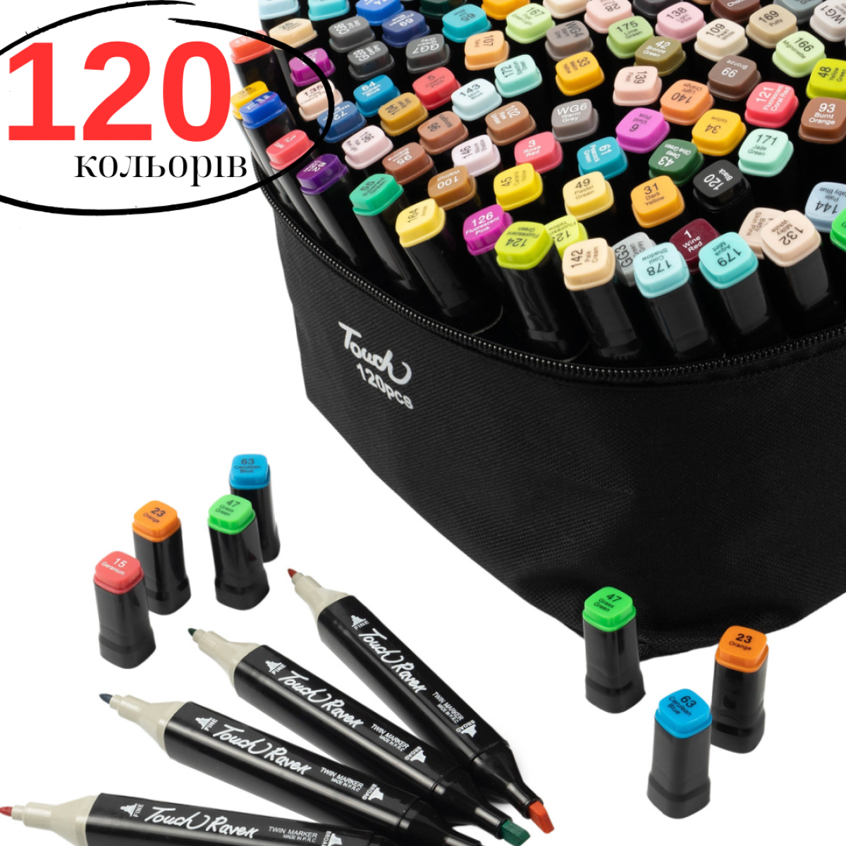 Набір маркерів скетч 120 кольорів Touch Raven для малювання, в чорному корпусі, маркери двосторонні.