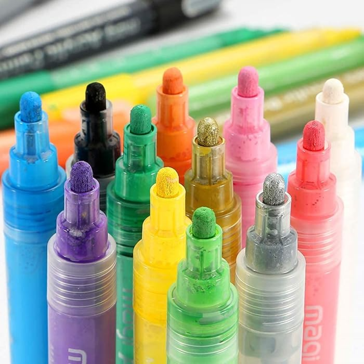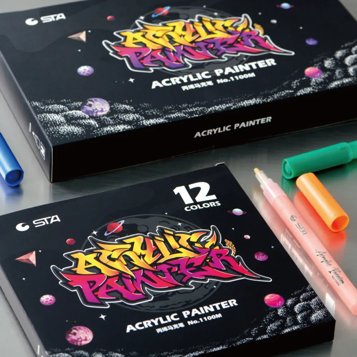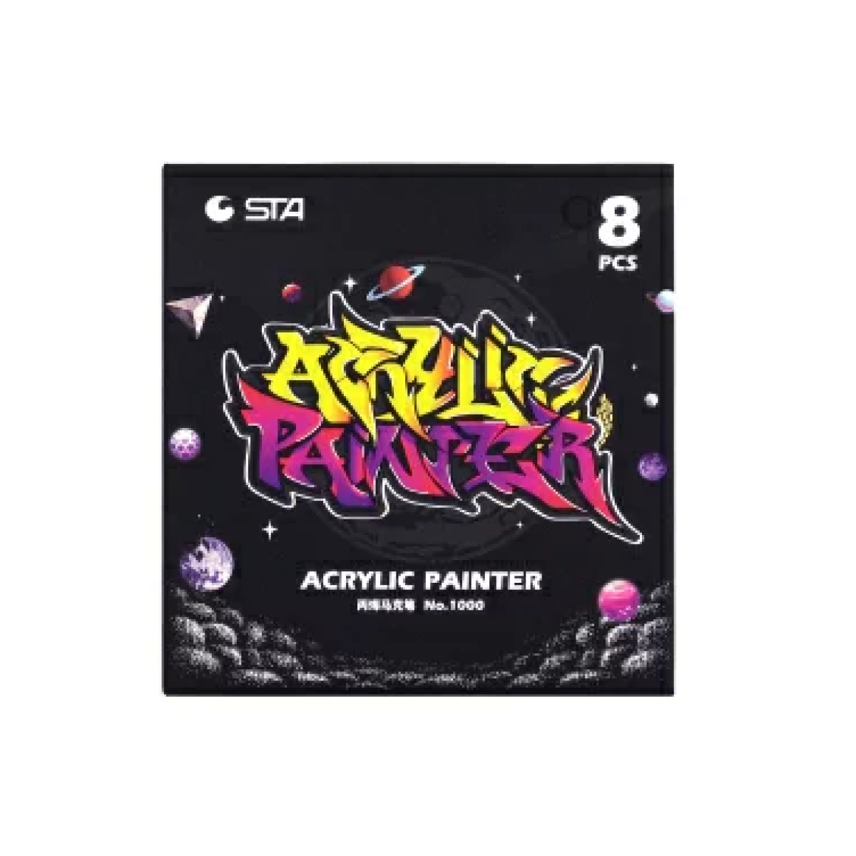Акрилові художні маркери STA з пігментним чорнилом на водній основі - це універсальні та високоякісні інструменти для створення яскравих, довговічних малюнків на різних поверхнях. Кожен маркер наповнений насиченими, непрозорими кольорами з акрилової фарби професійного рівня, що робить їх ідеальними для малювання на папері, полотні, склі, кераміці, пластику та дереві. Цей набір дає змогу малювати чіткі та барвисті зображення, ніби «наповнені» кольором зсередини, а також наносити написи та зображення на будь-які поверхні. Товщина лінії 2 мм чудово підходить для створення скетчів, ілюстрацій і чітких контурів. Завдяки тому, що фарби можна змішувати між собою, досягається ефект плавних переходів і нових відтінків. Кольорові акрилові маркери з легкістю можуть використовувати як діти, так і дорослі, що робить їх чудовим вибором для різноманітних DIY-проектів і творчих експериментів. Характеристики: Палітра: 8 кольорів Розмір маркера: 146,2*18 мм Товщина лінії: 2 мм Чорнило: 6 г Ресурс: 100 м