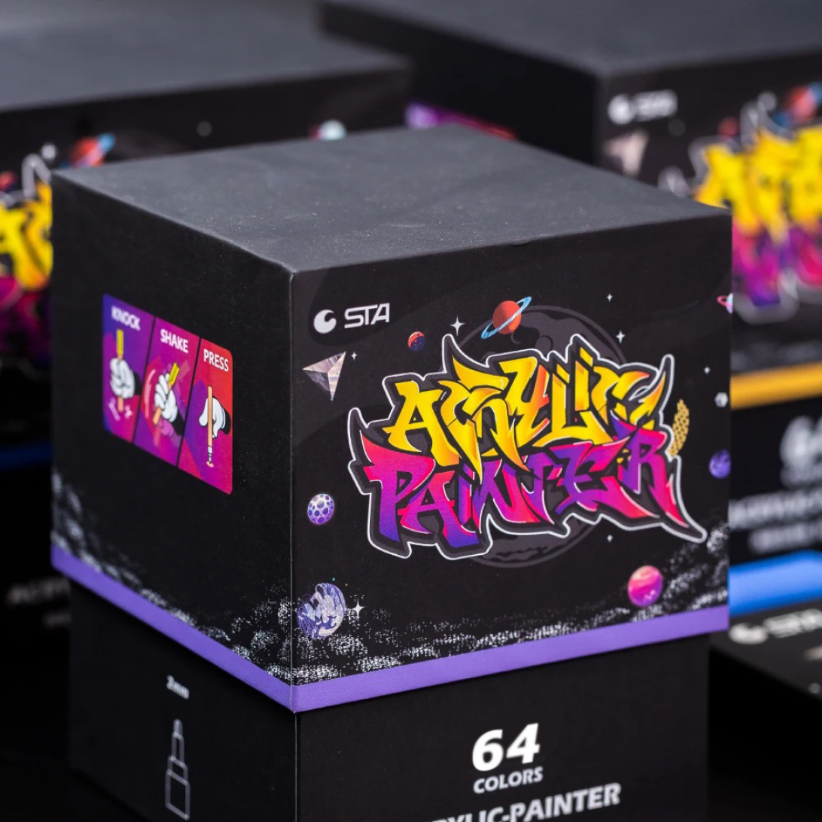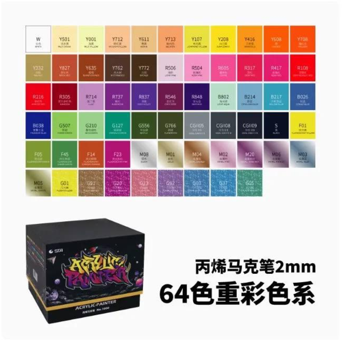 Маркери акрилові STA для малювання, преміум якість, набір 64 кольорів, універсальні для скла, дерева, ткани та кераміки