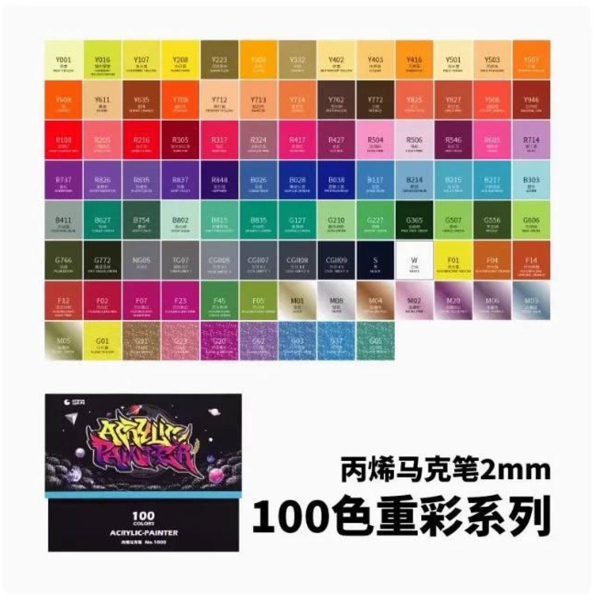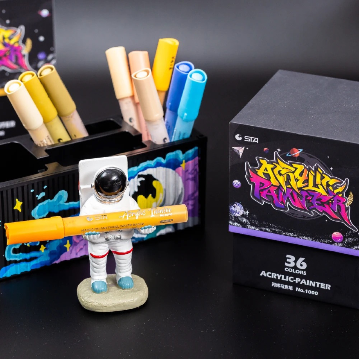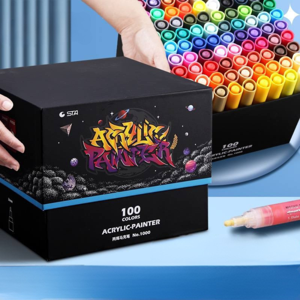 Маркери акрилові STA для малювання, преміум якість, набір 100 кольорів, універсальні для скла, дерева, ткани та кераміки