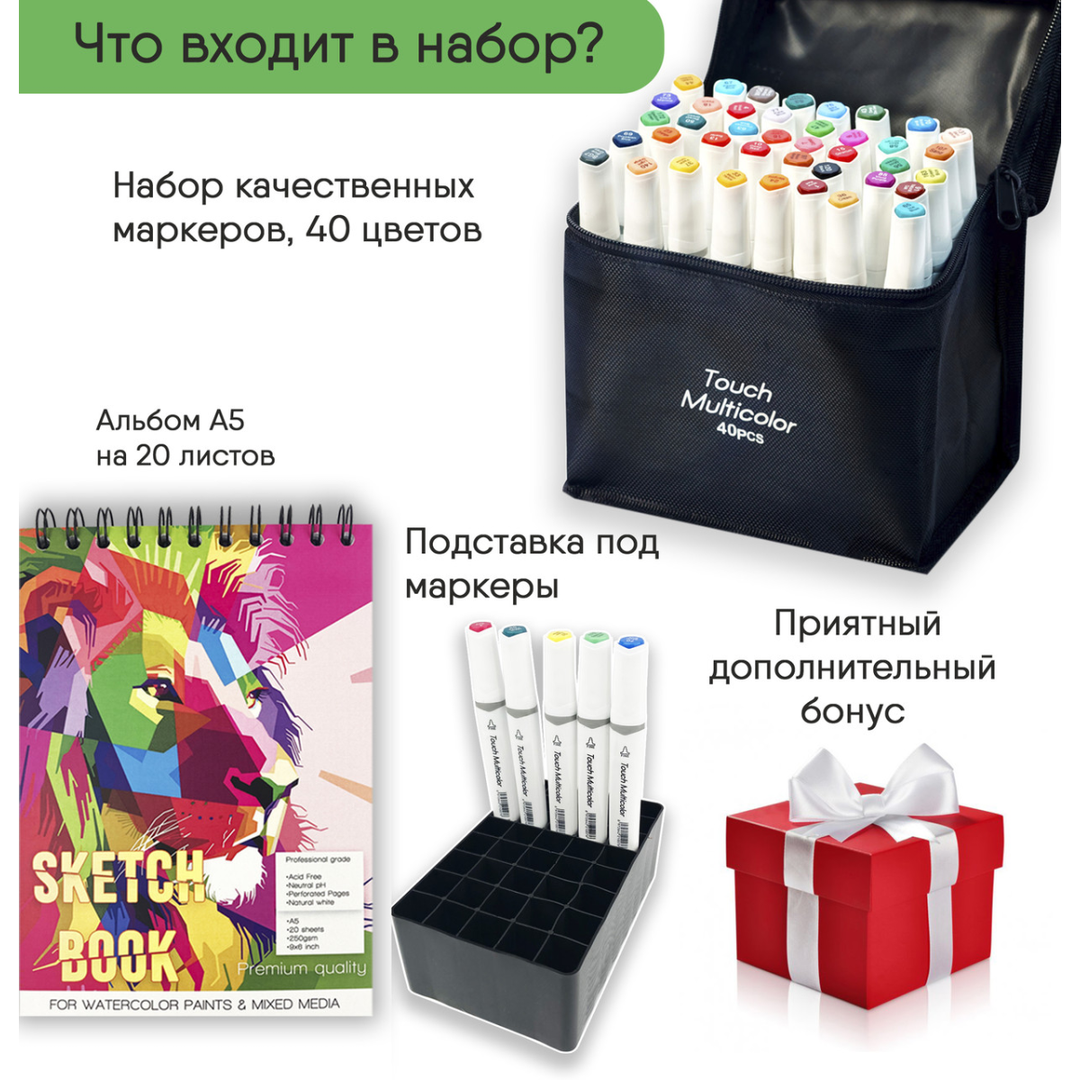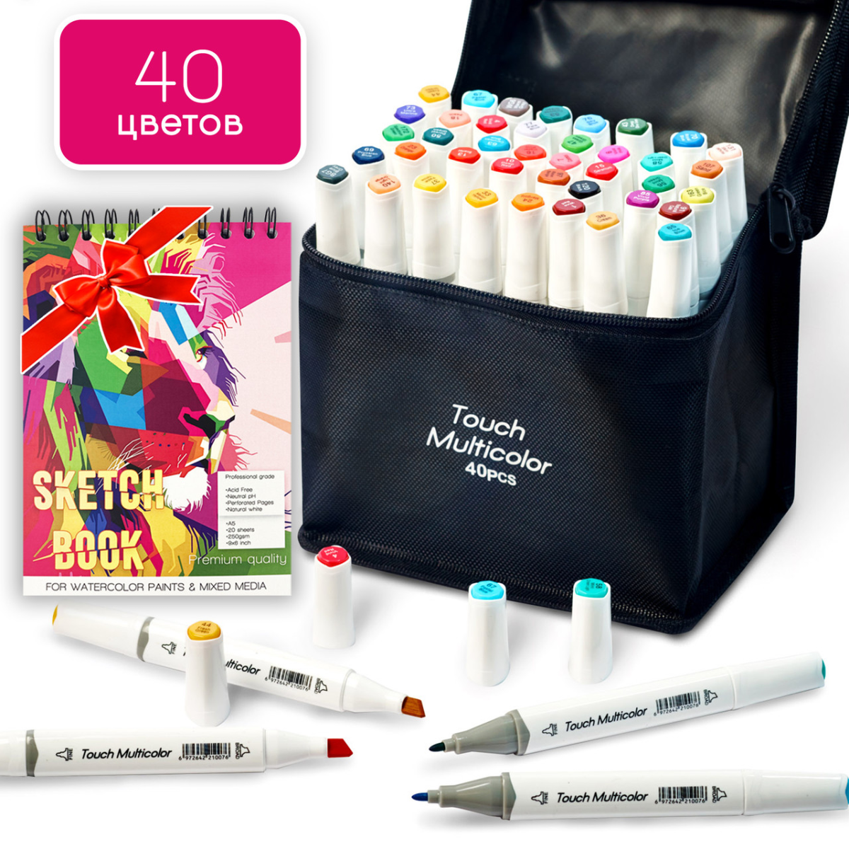Набір маркерів двосторонніх Touch Multicolor 40 кольорів та Папір для скетчингу та малювання у форматі А5 - універсальний подарунок для любителів малювання!