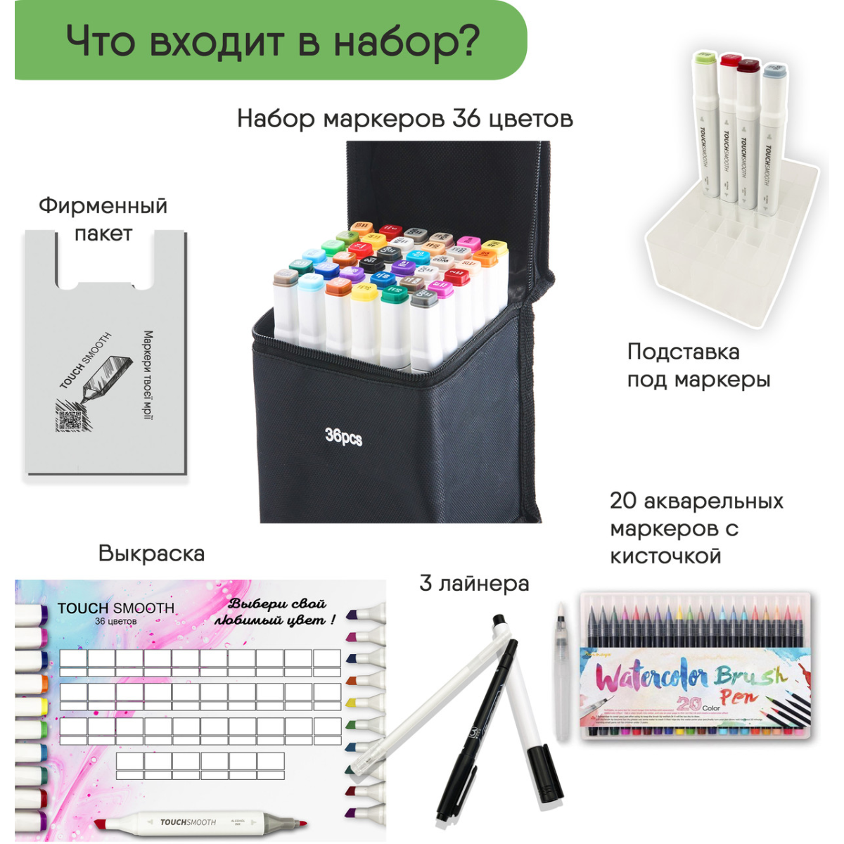 Набір двосторонніх маркерів Touch Smooth для скетчинга на спиртовій основі 36 штук