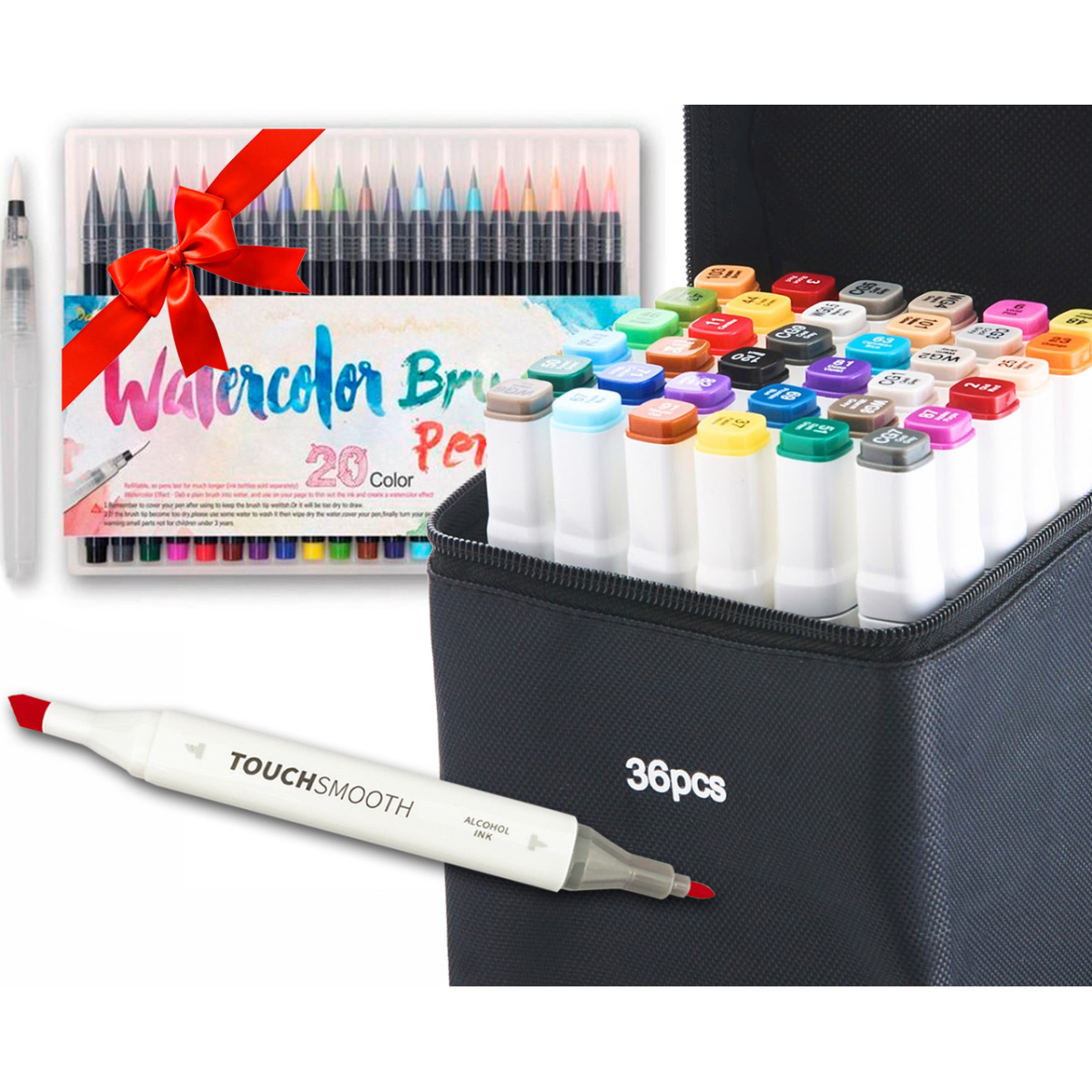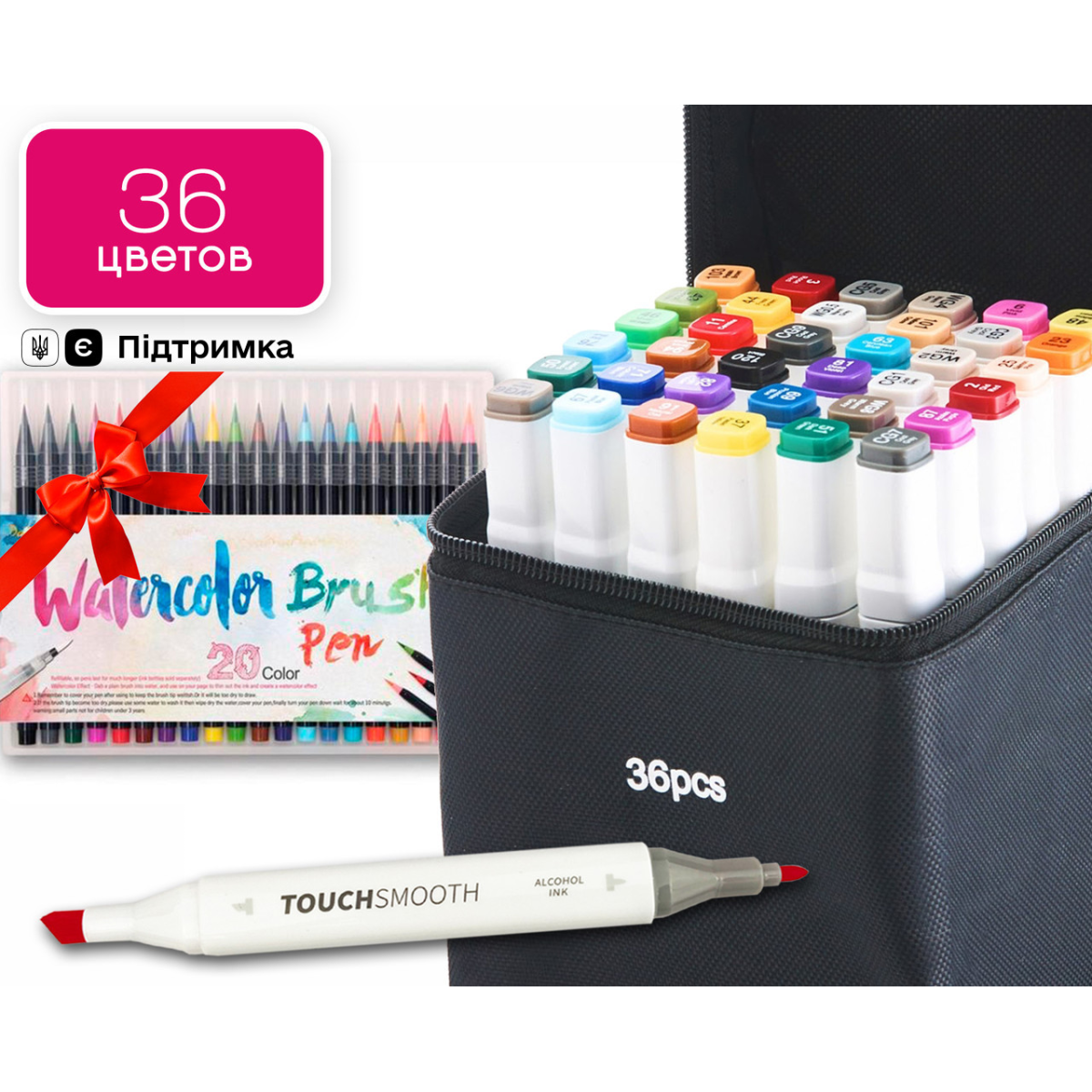 Ви купуєте Набір двосторонніх маркерів Touch Smooth для скетчинга на спиртовій основі 36 шт і разом з ними отримуєте Набір акварельних маркерів Water Color Brush маркер - пензлик 20 кольорів