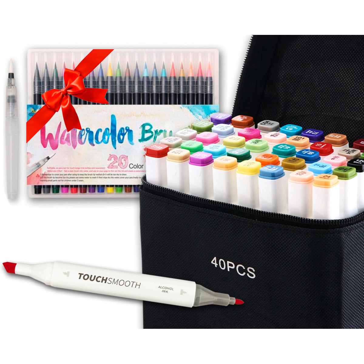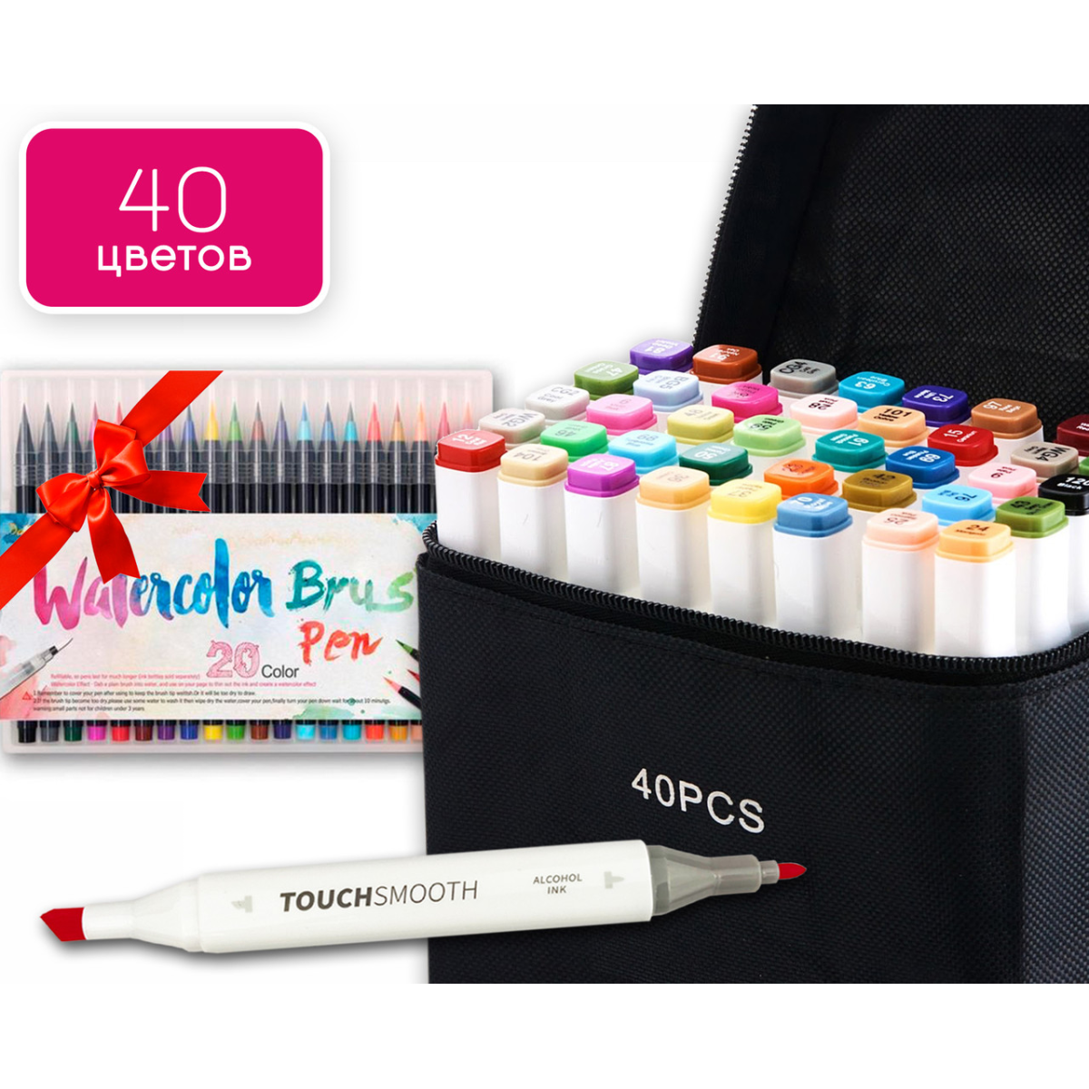 Набір для скетчів маркери двосторонні Touch Smooth на спиртовій основі 40 штук + 20 шт акварельних маркерів